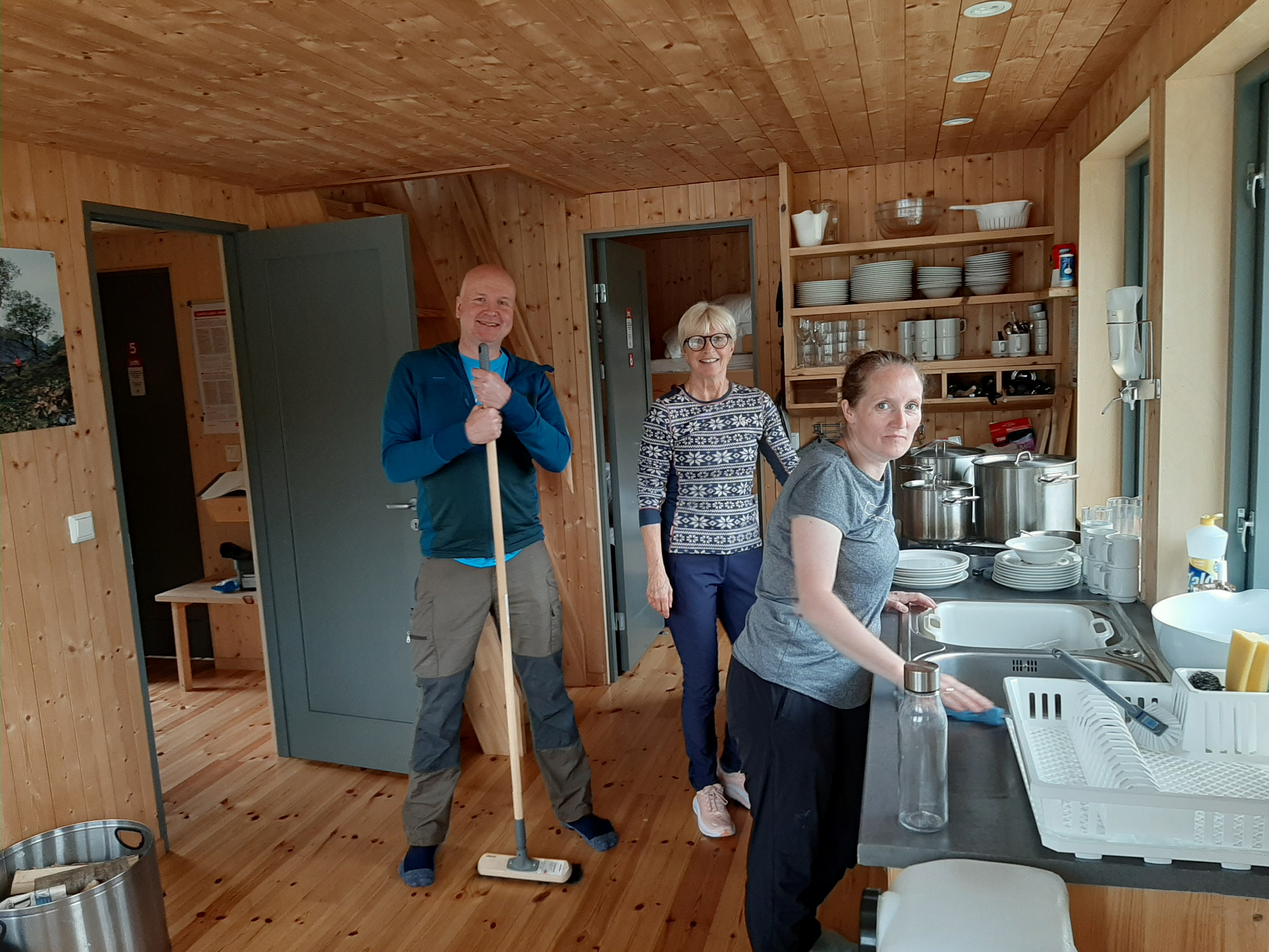 Det er dugnad på turlagshyttene nå i juni. Da blir det vasket og fylt på med proviant og ved.