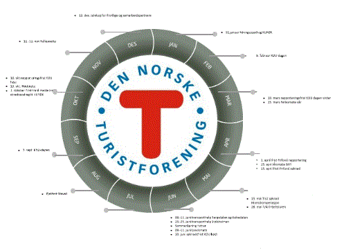 Årshjulet gir oversikt over viktige datoer i Bergen og Hordaland Turlag gjennom året.