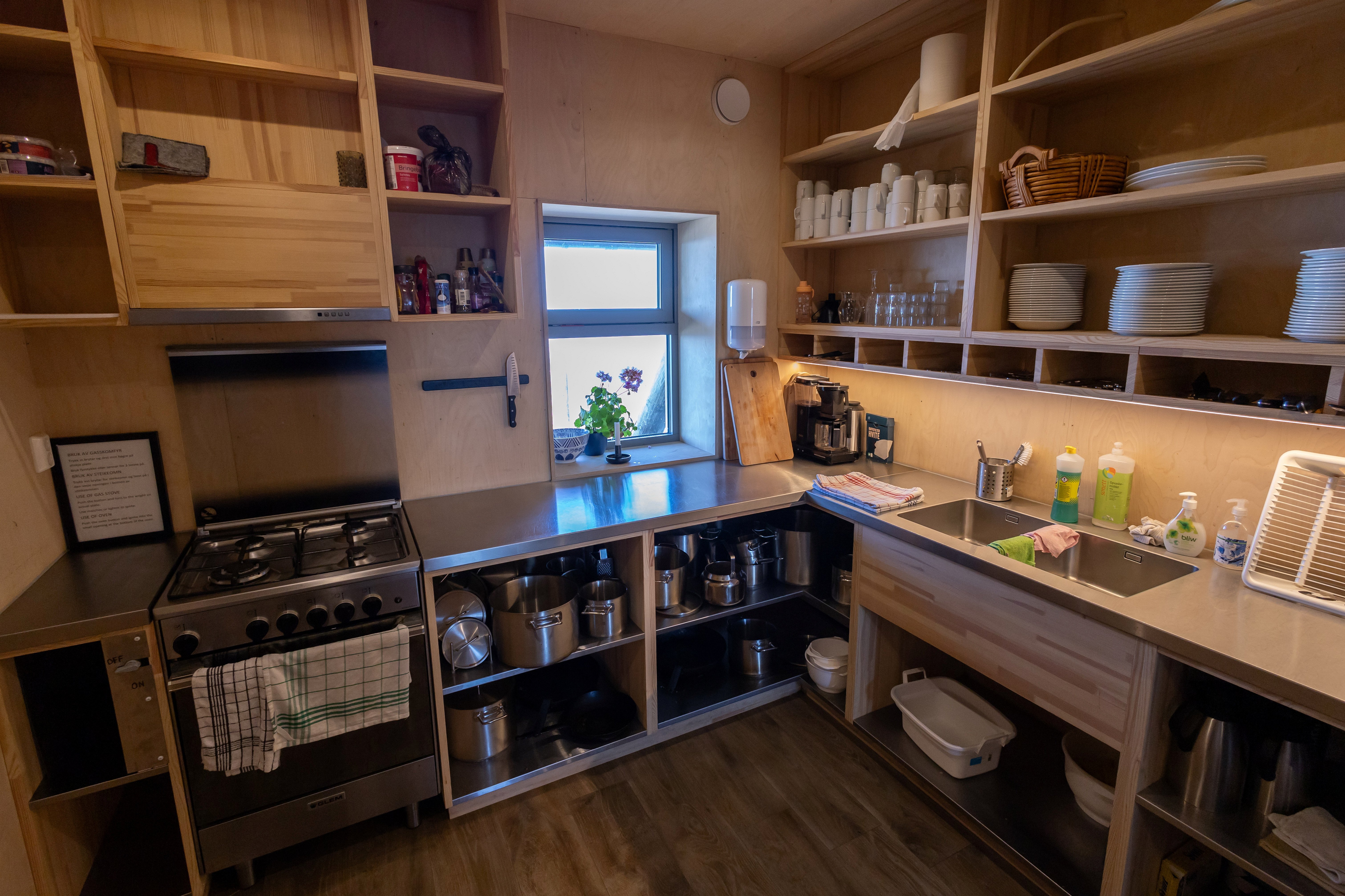 På hyttene har du det du trenger av utstyr for matlaging. Du står selv for matlaging, vannhenting, oppvask, gulvvask og generell rydding. Propanapparat for matlaging er standard på hyttene. Før du kan tenne på, må du vippe bryteren på propanflasken til «åpen» posisjon. Husk å stenge ventilen før du legger deg eller forlater hytten.