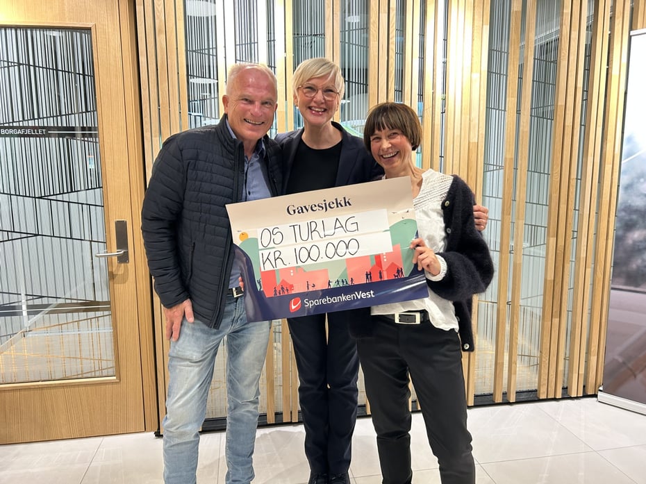 Os Turlag fekk kr 100.000 i gåve frå Sparebanken Vest 2. desember, for ei julegåve!