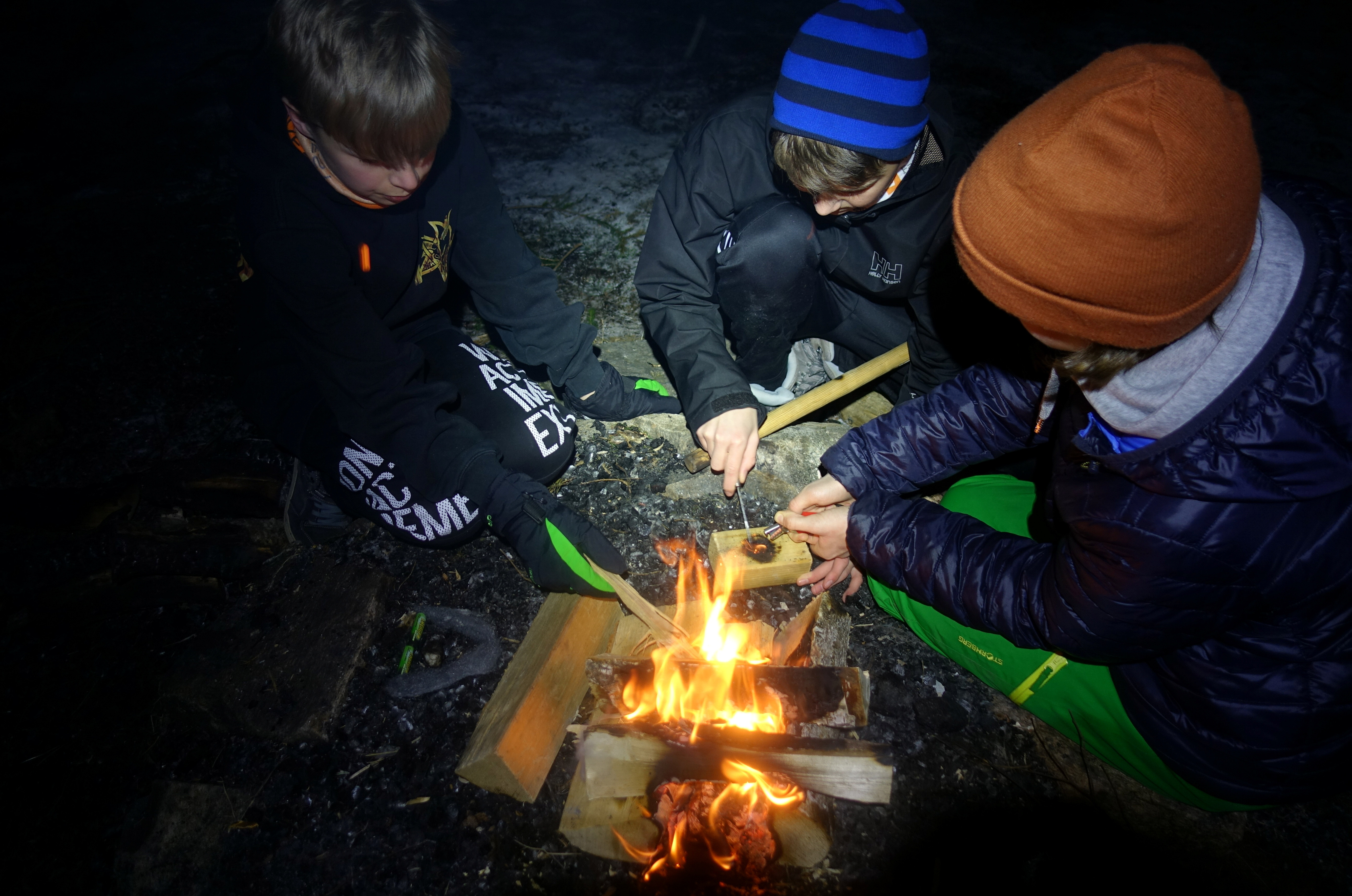 Finn et trygt sted, lag bål sammen og lær barna hvordan man fyrer opp – med tennstål, never og småkvist. Bruk tid og gjør det til en opplevelse i seg selv.