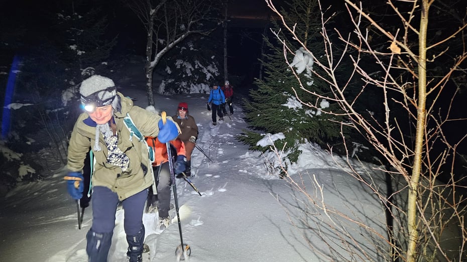 Trodde du at nordmenn bare var født med ski på beina?… En sporty gjeng trosset kulden, tok truger og staver på og gikk løs på området i Botnemarka. Mye snø, blide turfolk med mye, lite og ingen erfaring med truger gikk ut fra skistadion i Botne, inn i en snødekt skog. Vi snirklet oss til å begynne med etter lokalt opptråkket skispor sammen med spor fra harer og rådyr. Sollivann ble passert på avstand før vi etter hvert tok av opp mot Fossglaneren med mange avstikkere utenom løypene. Vel oppe tok vi oss en velfortjent pause med flott utsikt over Oslofjorden før vi tok trugene fatt igjen og gikk den siste halvtimen ned mot bilene. Noe ufrivillig bading i snøen på vei ned og med lår og hofter som fikk kjørt seg på årets første trugetur var vi alle enig i at det hadde vært en super tur. Vel møtt til neste trugetur.