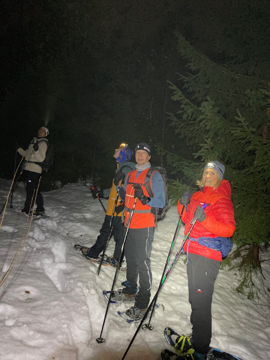 Onsdag 24. januar var det kveldstur på truger over Gulliåsene på Barkåker. Vi var fem personer som var ute i vinterskauen med Nick Bull som veiviser. Tåka letta litt ilø av kvelden, og vi fikk se hele konturene av månen på en noe skya himmel. Trugeføret var greit som følge av regnet som hadde pakka snøen sammen. Og ikke var det så kaldt heller.