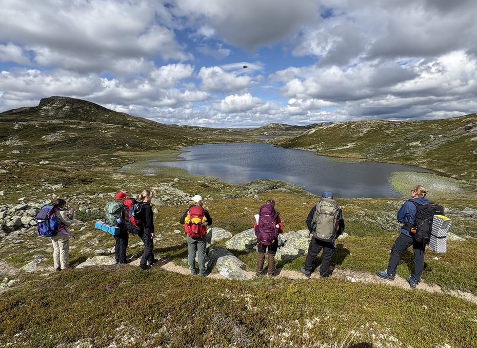 Fersking i fjellet, kurs/tur 4-6. juli 2025 Det var meldt regn denne helgen…. men de 9 personene som møttes på Kalhovd turisthytte fredag kl. 12, ble ikke skremt av litt dårlige værmeldinger. Det ble tatt en kort orientering om turen, før vi kjørte til Strengen og parkerte der. Da dette var et kurs, ble det satt av tid til gjennomgang og diskusjon om diverse temaer underveis på turen.
