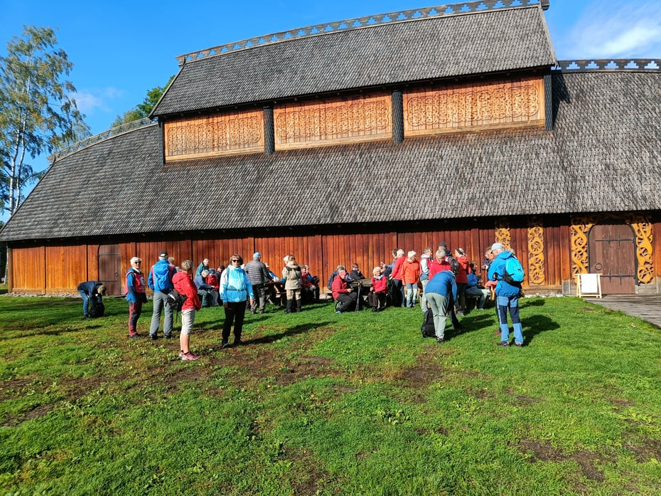 I dag var vi 48 turgåere som gikk fra Steinbrygga i Borre til Gildehallen i Midtgard vikingsenter og videre forbi Rørestrand camping til Strandparken hvor nista ble spist. Herfra gikk vi kyststien tilbake forbi Redningsselskapet sitt anlegg til parkeringen. Turen var på ca 8 km og gikk i et lett turterreng. Været viste seg igjen fra sin beste side med noe vind. May og Steinar ledet turen.