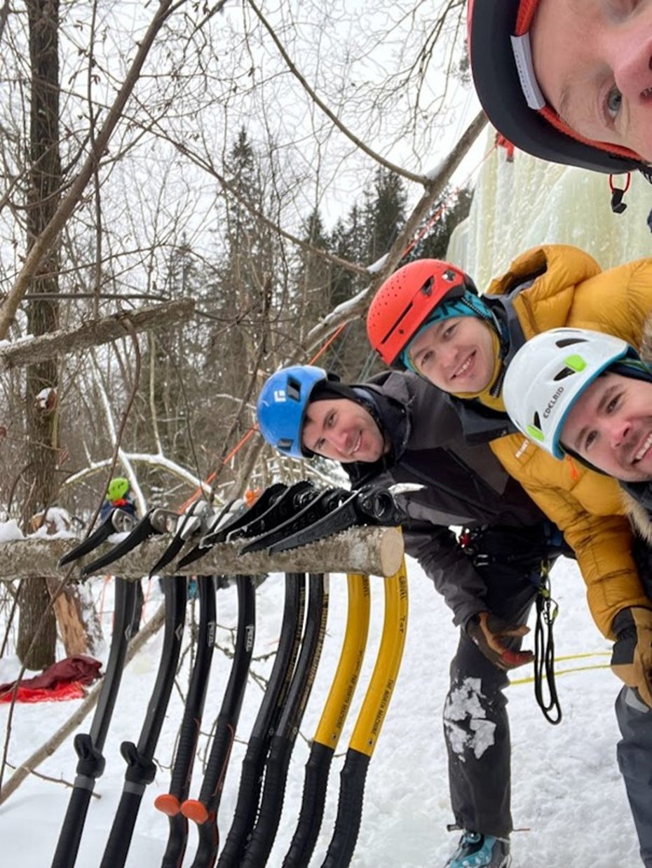 Deltakerne var superflinke. De fikk over to dager en innføring i stegjerns og økse teknikk, plassering av isskruer og Abalakov (dette bør dere Google!). I tillegg fikk vi både klatret, rappellert, satt standplasser og grillet pølser på fellesbål.