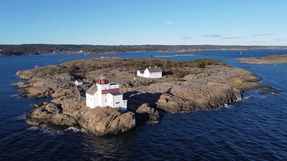 Etter en kort taxibåt tur over fjorden og ut til fyret og noen få meter å gå frem til hytta var vi klare.