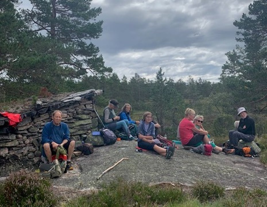 Turen startet ved Stemtjenn ved Heiland, over bekken og oppover nymerket sti mot Steinhytta. Utsikten underveis var flott, vi kunne se til Havrefjell, Solhomfjell og til og med et glimt av havet. Matpakken ble inntatt ved Steinhytta før vi gikk videre mot det høyeste punktet som ligger på 504 moh. Derfra gikk turen sørover og vi kom tilbake til samme sti som vi starta på.