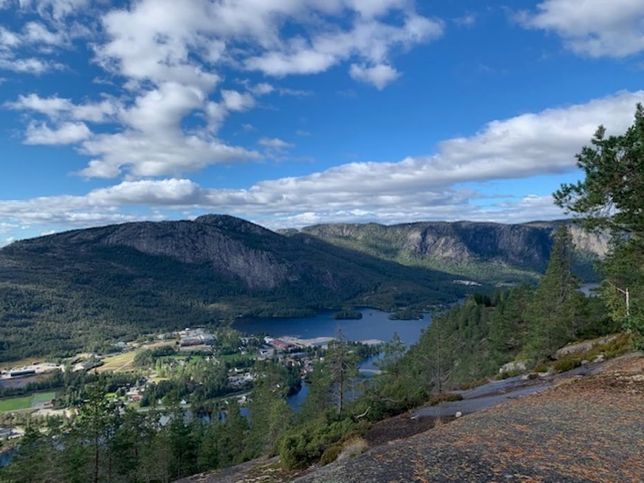 Vi gikk sammen med Nissedal Frivillighetssentral, 21 to-beinte og 3 fir-beinte startet opp fjellet til Skålfjell 531 moh. Flott utsikt og nistepakken ble inntatt her. Videre fulgte vi god sti mot «Fossane» med vannspeil og brusing fra fossen. Nydelig plass. Tilbake til stideler, der vi fulgte «gamle kyrkjeveg» tilbake til bilene. Takk for turen alle sammen, det er noe spesielt med fjellene rundt Nisser.
