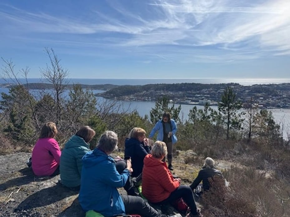 Sesongens første onsdagstur gikk til Vakthusheia i Risør i nydelig vårvær.
