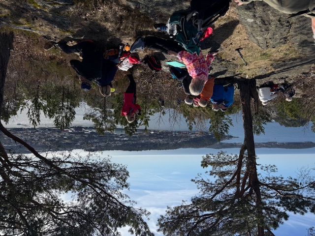 25 turglade mennesker og 2 hunder startet fra parkeringsplassen ved båthavna i Mindalen. Passe rolig tempo opp bakkene på fine stier, der mange av oss ikke hadde gått før. På toppen var det bare å nyte utsikten mot hav og by, mens nistepakken og kaffen ble inntatt.