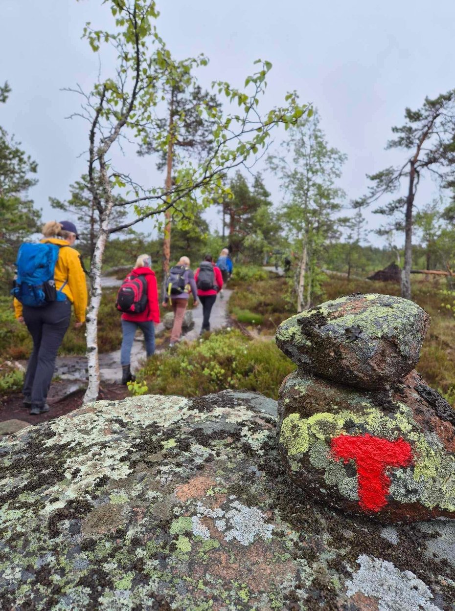 Lykken er å ikke stole helt på værmeldingen! 26 stykker tok sjansen på at dette ble en fin tur til tross for værmeldingen og møtte opp til den 18 km lange turen i vår T-merkede villmarksløype fra Felehovet til Heiland i dag. Det var meldt kraftig regn frem til lunch tider.