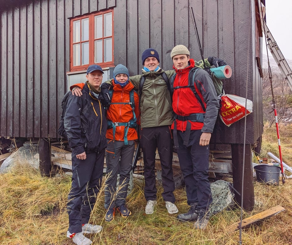 To rustne herrer var på Lurfjellhytta i oktober på vedlikeholdsdugnad. Høsten er kommet og vi regnet med at vi bli aleine – men der tok vi feil. Ut på ettermiddagen fredag kom det et 4-manns turfølge. Fire unge gutter, tidlig i 20-årene, har tatt seg en ’jomfrutur’ opp til hytta. Og må vi slå av en prat. Fem kjappe spørsmål til ungdommen som forøvrig heter Marcus, Emil, Edvard og Mikke.