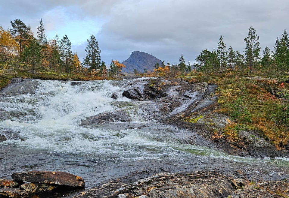 Parkering ved parkeringsplass i Tverrånes. Følg T-merket sti.