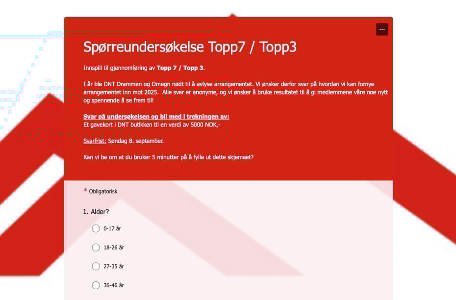 Vi vil ha din mening om Topp 7 og Topp3 arrangementet til DNT Drammen og Omegn, og inviterer derfor til spørreundersøkelse!