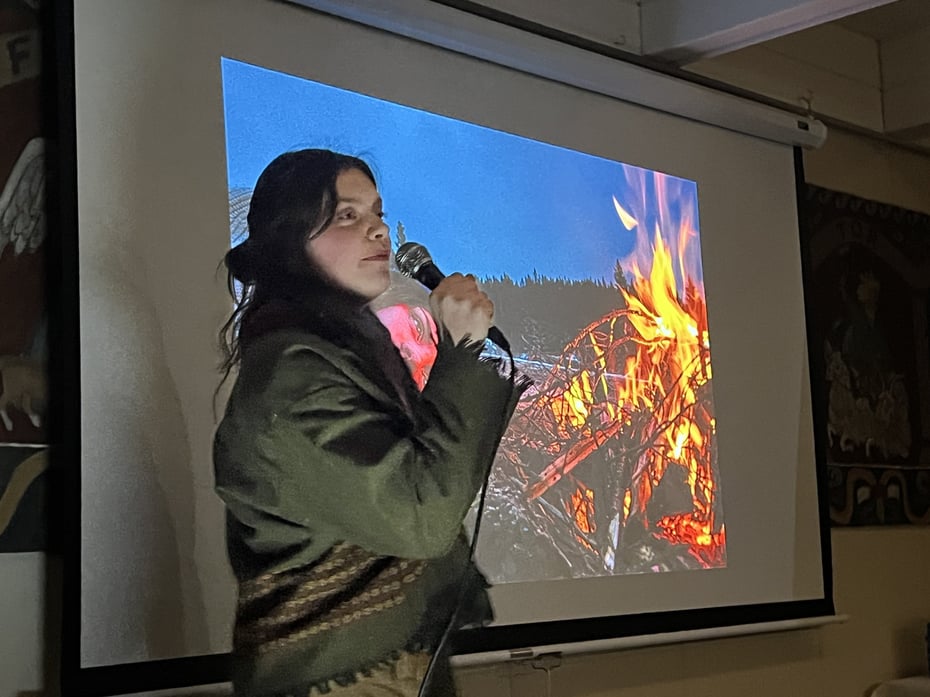 Under foredraget fortalte hun om både oppturer og nedturer i møte med naturen og seg selv. Om frykt for mørket, for å være alene, for store dyr og for det ukjente, men også om turglede og å trosse frykter og uro og finne sin plass i livet.