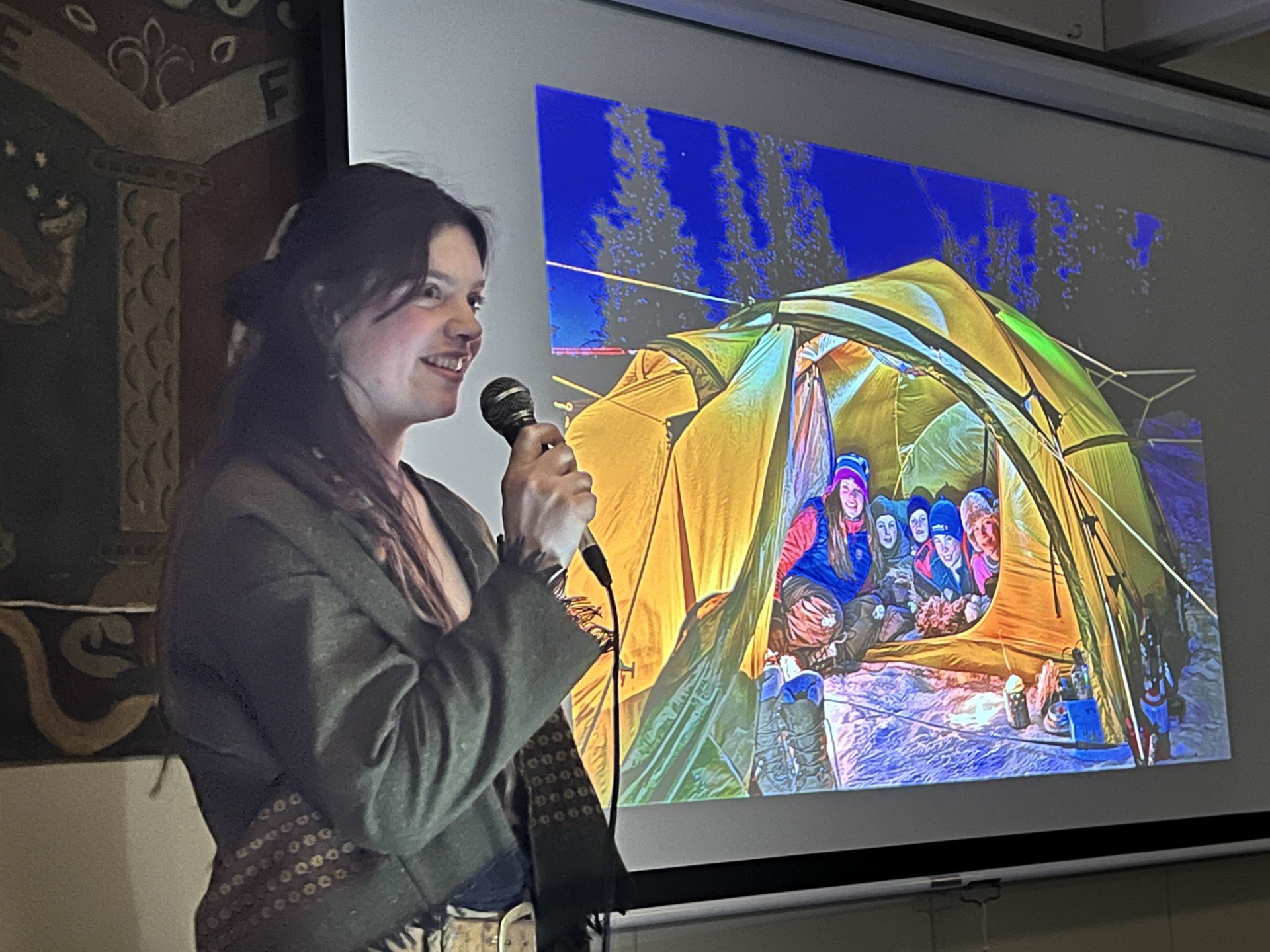 Under foredraget fortalte hun om både oppturer og nedturer i møte med naturen og seg selv. Om frykt for mørket, for å være alene, for store dyr og for det ukjente, men også om turglede og å trosse frykter og uro og finne sin plass i livet.