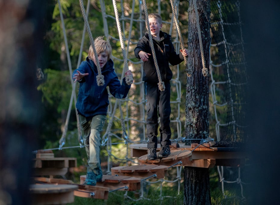 Nå er det bare å svinge seg blant trærne og suse bortover i ziplinen på Osbakken. Våre flinke frivillige har fikset klatreparken så den er helt trygg å bruke. De har også fylt på med bark på bakken, så landingene blir myke.