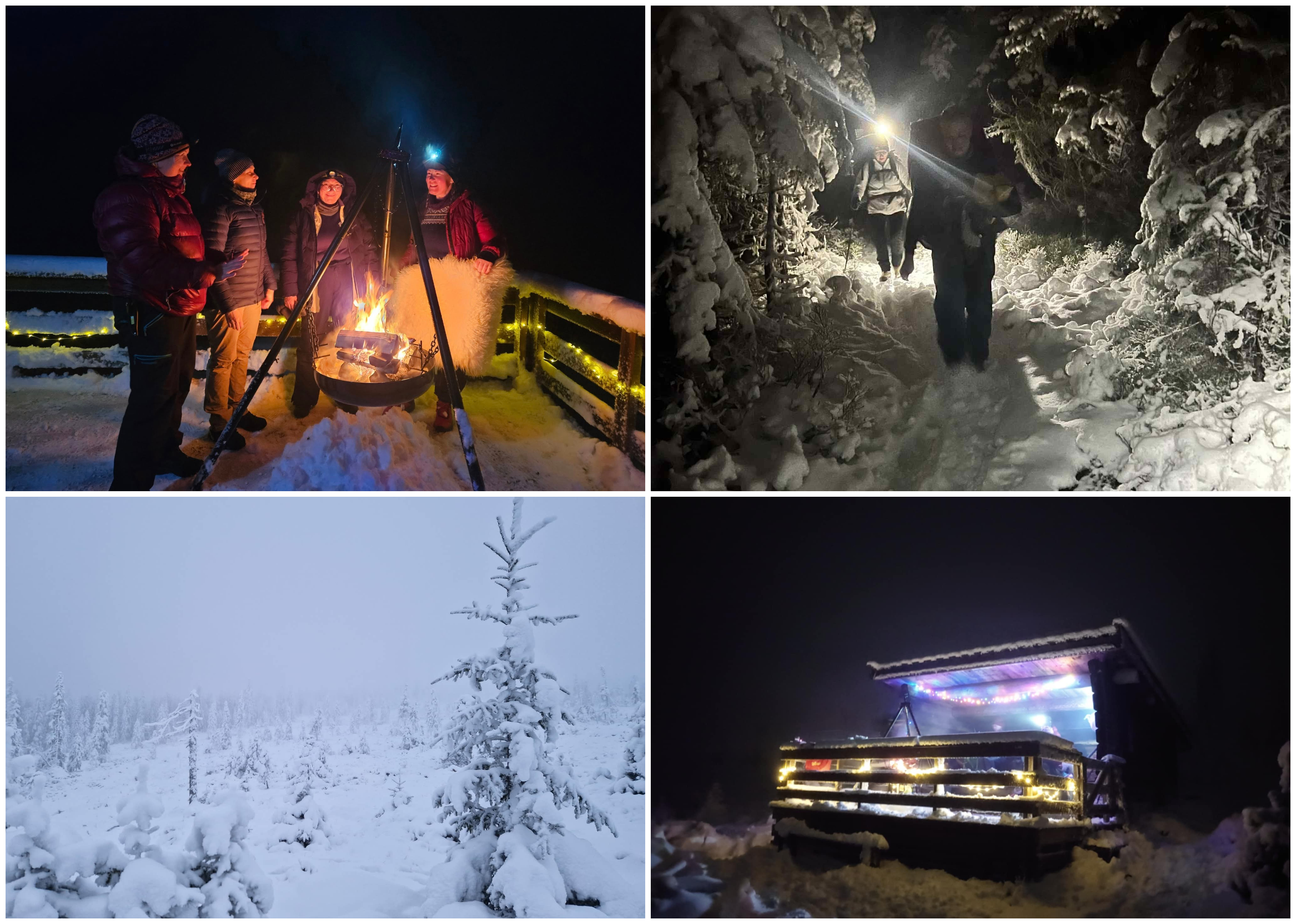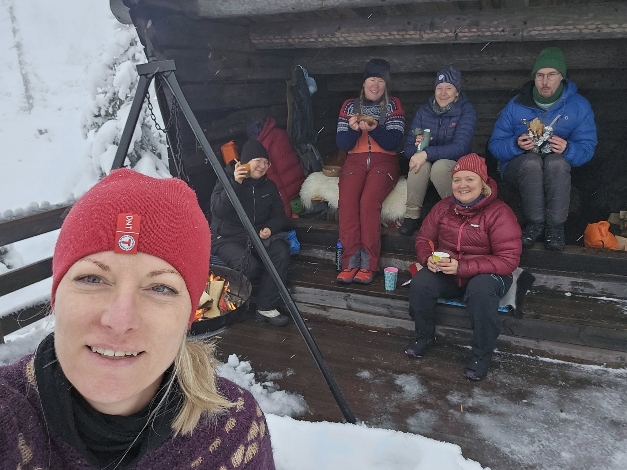 - Årets siste utenatt med DNT Gjøvik og Omegn. Herlige turfolk, bål, skravling og god natt i gapahuken ved. Lauvhøgda i Vestre Tinte, aom leverte den ultimate julestemningen for oss seks som fylte sekker med ved, sovepose og annen proviant. Trærne var kledd i hvite kjoler, gapahuken var pyntet med lyslenker, varm gløgg i koppen sammen med pepperkaker....ja det blir ikke mer julete det, melder turleder Petra Kaderkova.