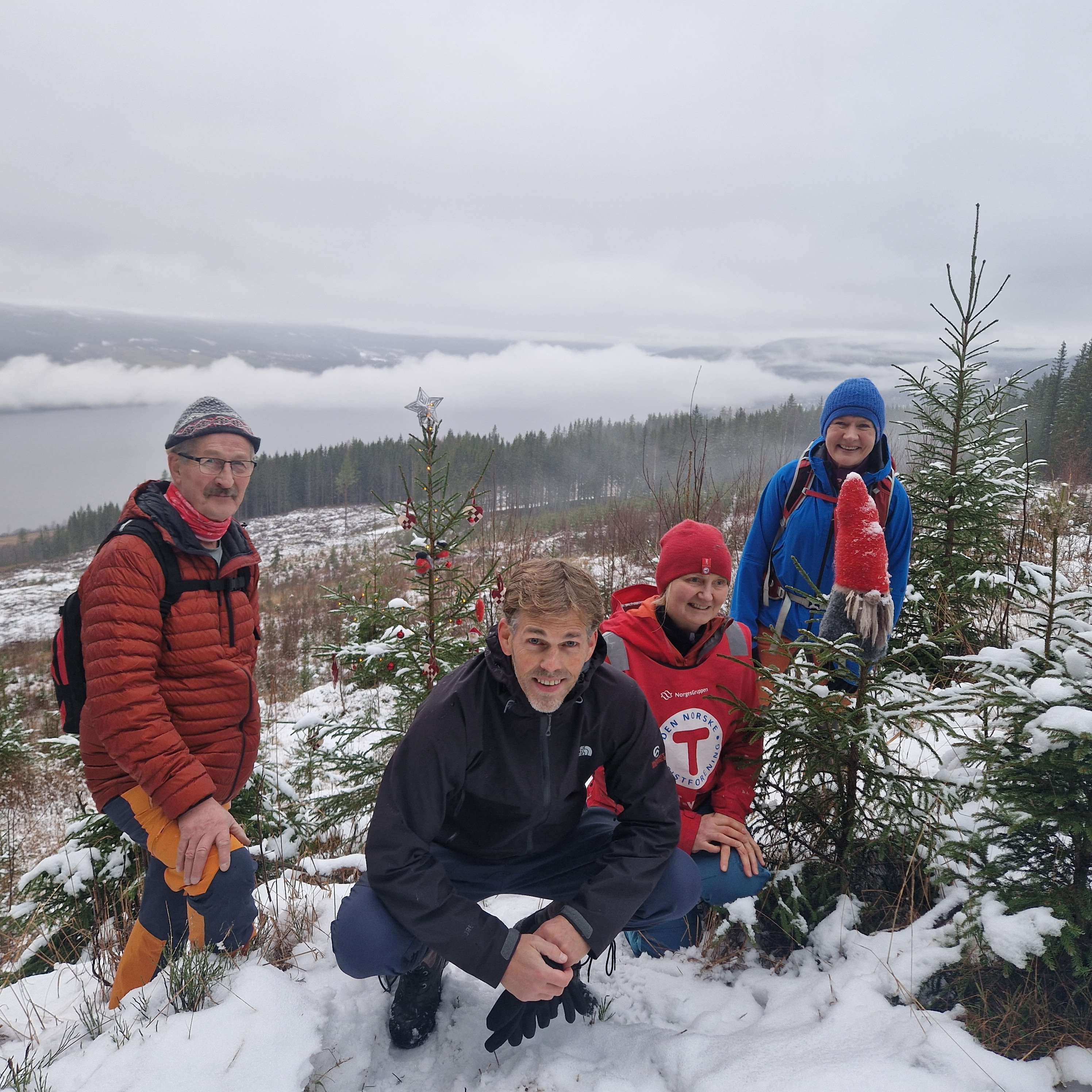 Turen var ønsket på truger i masse snø og skulle gi oss julestemning. Dessverre var det både isete, bart, grønt, varmegrader og vått. Tross det kjipe været var det en flott gjeng som gjennomførte med stil og det dukket opp noen nisser og juletre på turen.