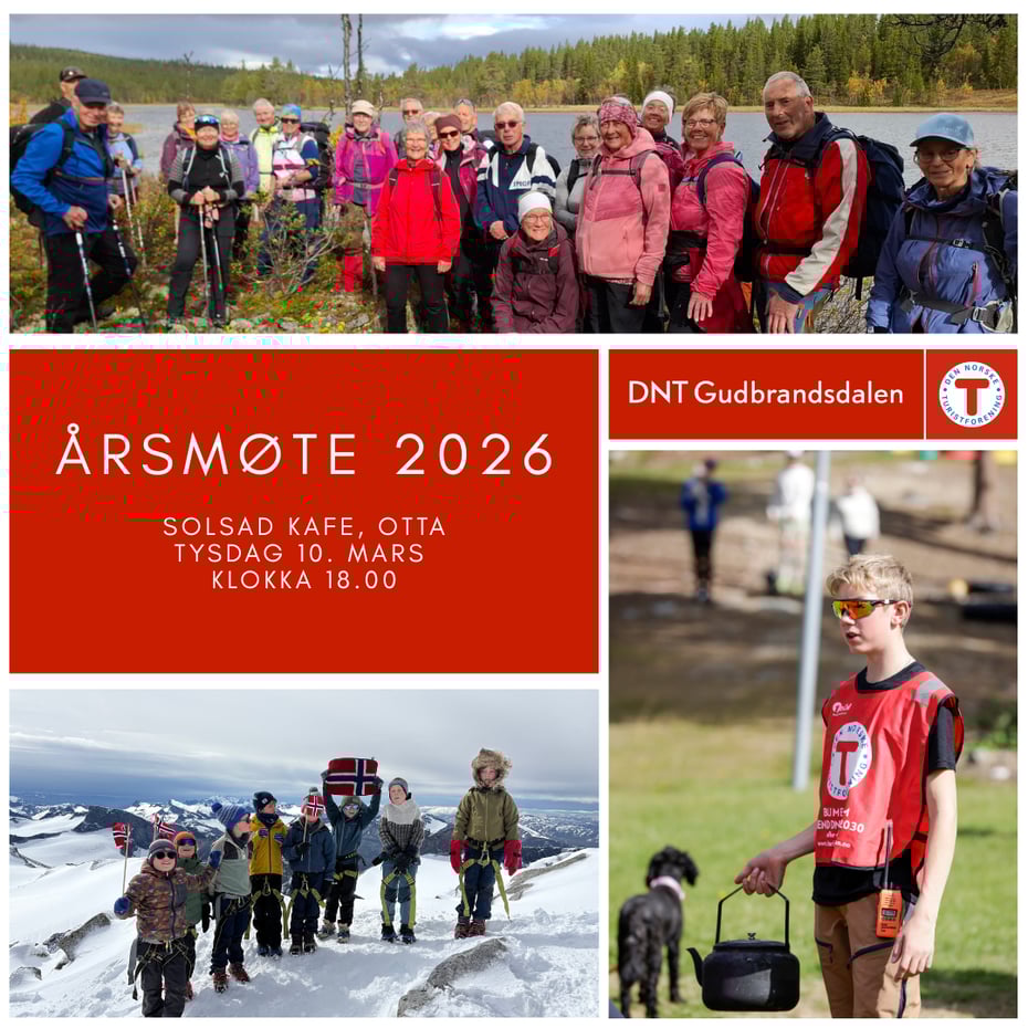Velkomen til årsmøte i DNT Gudbrandsdalen 10. mars. Møte er på Solstad kafe på Otta klokka 18.00.