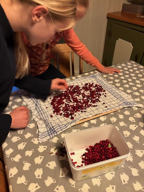 Etter en hyggelig pause med bål, pølser og pinnebrød, fikk gruppe 1 i oppgave å plukke tyttebær til middagen, mens gruppe 2 samlet kvist, kvast og høstfarger til borddekorasjoner i spisesalen. Med en liten sjokoladebit som motivasjon gikk begge grupper til oppgaven med stor iver. Etter en kort pause samlet alle seg i stallen for første rideøkt – et høydepunkt for mange!