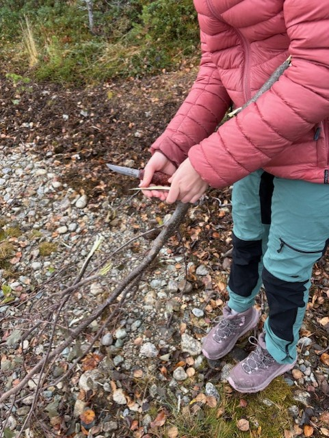 Dagen startet med tur i nærområdet, med termos og nistepakke i sekken. Underveis fikk jentene høre litt om bosettingen i Skåbu, se en gammel elggrav, og besøke flere store fiskevann. Vi snakket også om hvordan strømmen kom til bygda, og hvor den tar veien videre.