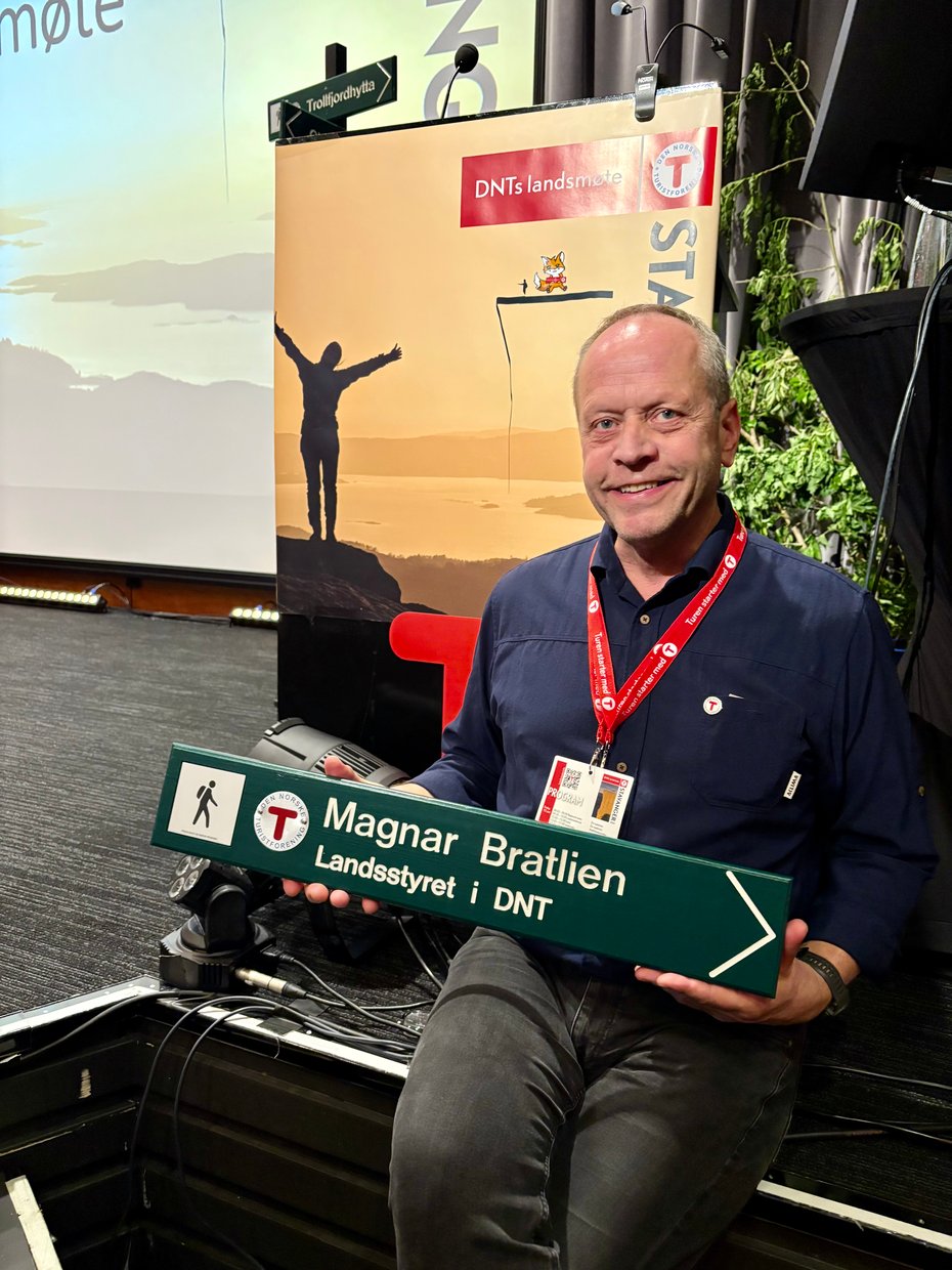 Eit høgdepunkt under møtet var takkinga av Magnar Bratlien, som etter fem år i Landsstyret no gir stafettpinnen vidare. Det vart mange varme ord om Magnar sitt engasjement og bidrag. Med sitt rolege, kloke og omsorgsfulle vesen har han vore ein viktig samlande kraft i DNT-familien. Tusen takk for innsatsen, Magnar!