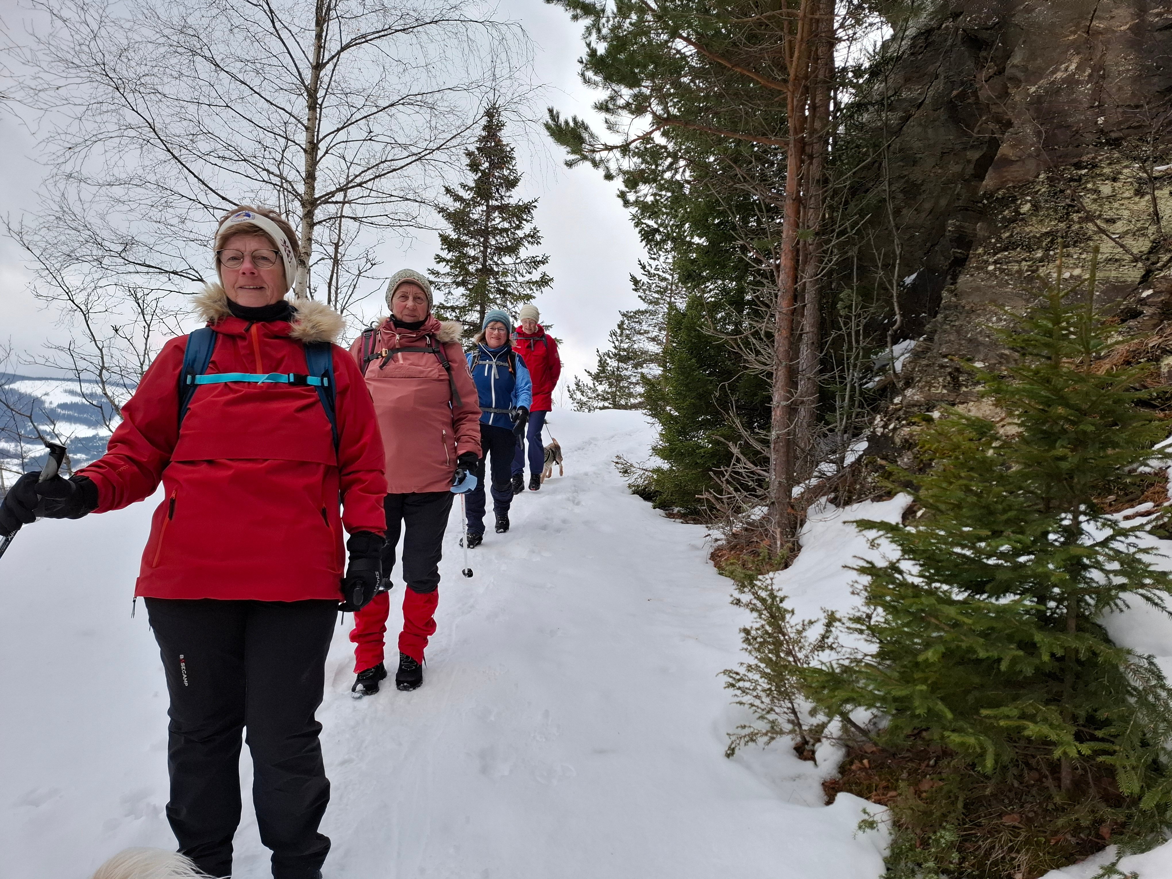 På trugetur til Skar deltok en trivelig gjeng på 11 spreke deltakere og 3 hunder. Alle 3 midtdalskommuner var representert. Det var fast trugespor hele veien, og de fleste valgte å gå uten truger. Fine utsikter selv om solen glimret med sitt fravær.