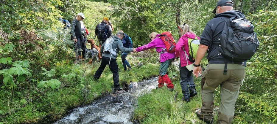 Med dette i baklomma møttes 18 deltakrar og 7 hunder ved gamleskulin der det vart gjeve ei stutt orientering om valgt tur.