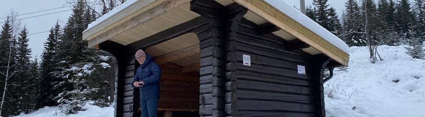 George Fuller ble takket for den flotte gapahuken han har gitt i gave til Lillehammers befolkning. Det skjedde på en sammenkomst med styret i DNT Lillehammer onsdag 13. desember. Marsipankake hører med når gaver blir gitt, og kaka var naturligvis dekorert med bilde av gapahuken.