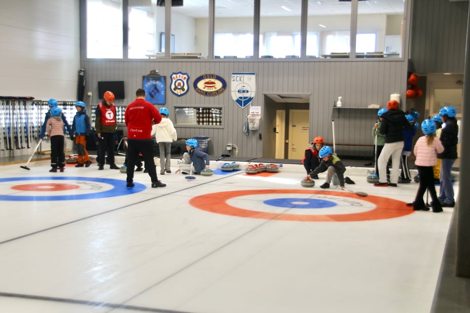 Denne uken arrangerte DNT Bærum Turlag friluftsskole for barn og unge. En av aktivitetene var curling hos Snarøen Curling Club.