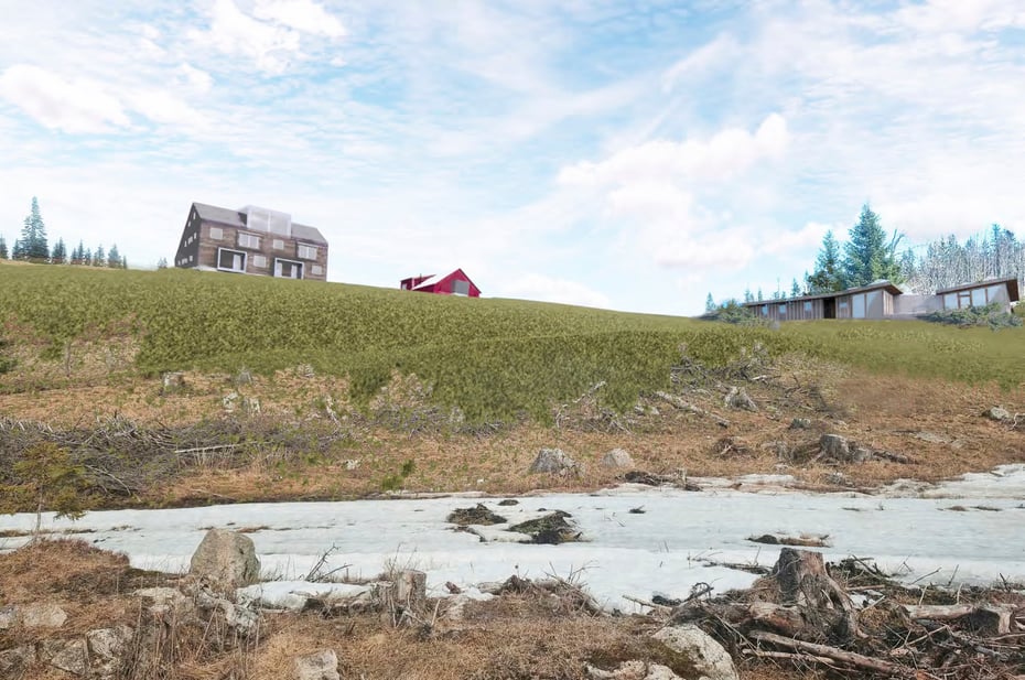 Skissene er klare. Markabrukere kan se frem til et unik tilbud ved Mylla når Skiforeningen og DNT Oslo og Omegn utvikler flere overnattingsteder på én tomt og på samme gårdstun.