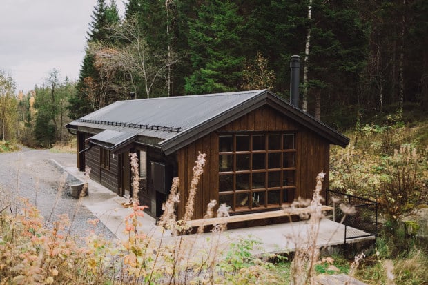 Et gammelt industribygg er forvandlet til en trivelig markahytte med tøft industripreg - og nydelig utsyn mot skog og vann. Fra 3. november 2025 åpner hytta Vannhuset ved Fiskelausa for overnatting.