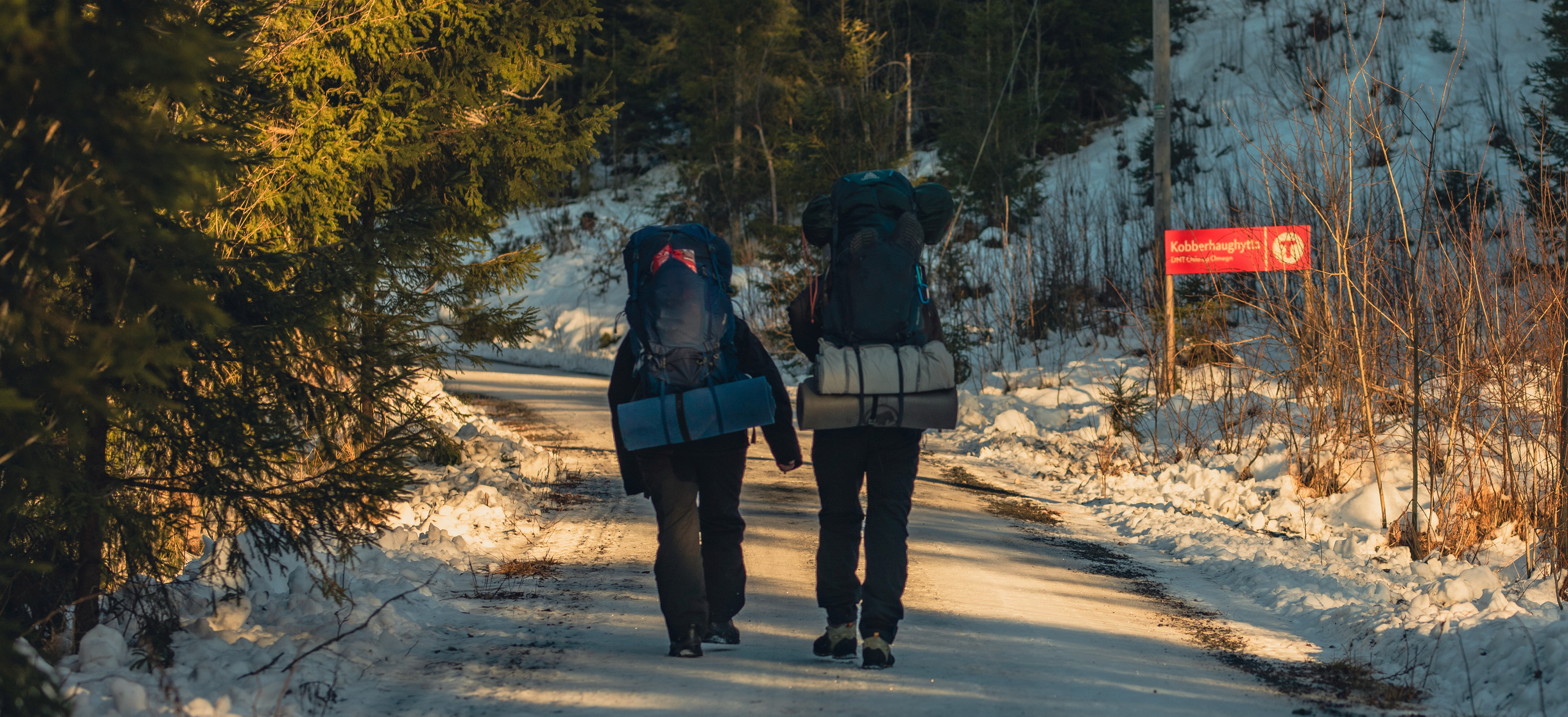 Fra den store kommunale parkeringsplassen i Sørkedalen kan du starte turen opp til Kobberhaughytta. Du følger skilting mot Kobberhaughytta, men følger grusveien i stedet for blåmerket sti.