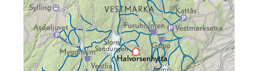 Lurer du på hvordan det går stier og hvor de ubetjente hyttene i Vestmarka ligger? Ta en titt på vårt turkart. Her får du full oversikt over alle blåmerkede stier og DNT-hytter.