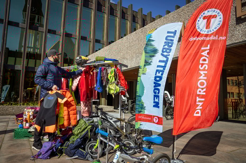 Turbyttedagen er et årlig bruktmarked i regi av DNT Romsdal for å gi turutstyr i god stand et lengre liv. Trenger du å kjøpe noe turutstyr eller har du utstyr liggende som du ikke bruker lenger? Lever inn utstyr du vil selge i forkant av Turbyttedagen eller kom innom og sikre deg diverse turutstyr på selve Turbyttedagen.