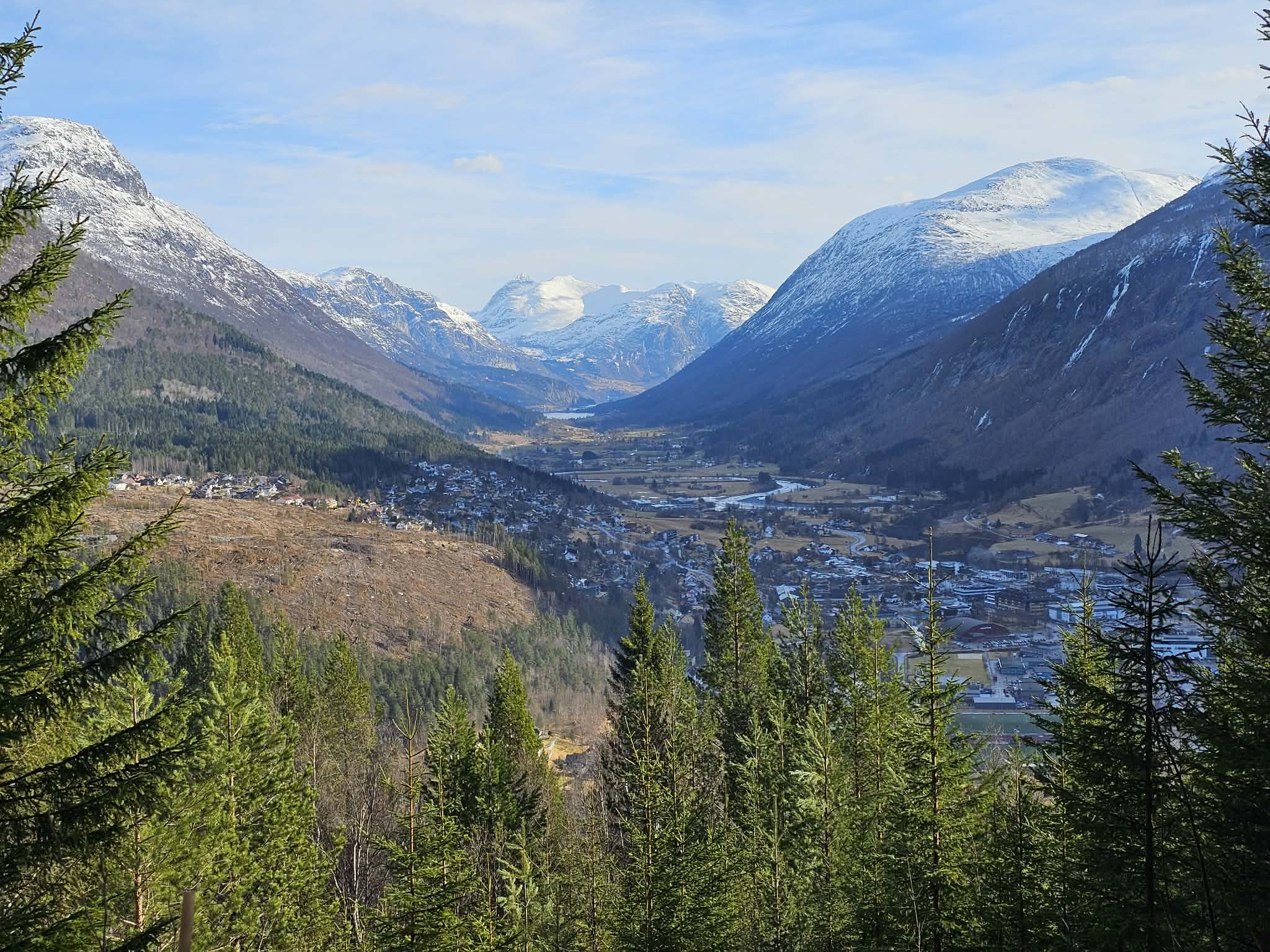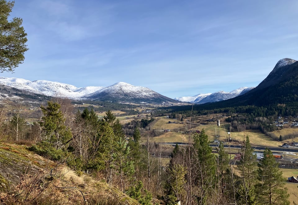 Frå Skuten er det flott utsikt over Strynedalen der ein kan følge elva som svingar seg nedover dalen.