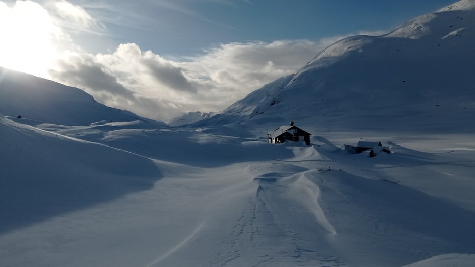 Hytta er eit ypperleg flott turmål på fjellski.