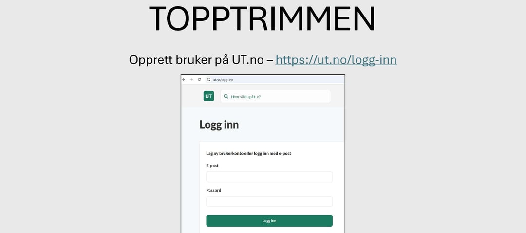 I denne artiklen kan du få vegleiing til korleis du opprettar ein brukar på UT.no og kan komme i gang med Topptrimmen 2026-28