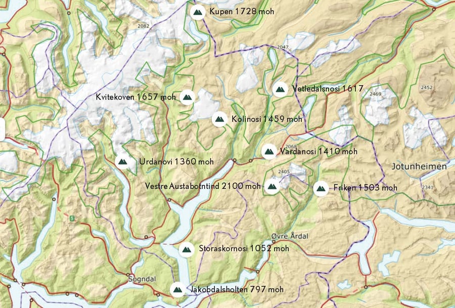Sist desse toppane var med i Topptrimmen var i 1996. Det kan difor ha vore endringar i lokale forhold som avvik frå våre turskildringar frå den gongen. For å gje best mogleg turskildring, set vi stor pris på om deltakarar på Topptrimmen sender inn oppdaterte turskildringar og bilde frå toppane, då kan vi oppdatera informasjonen på UT.no.