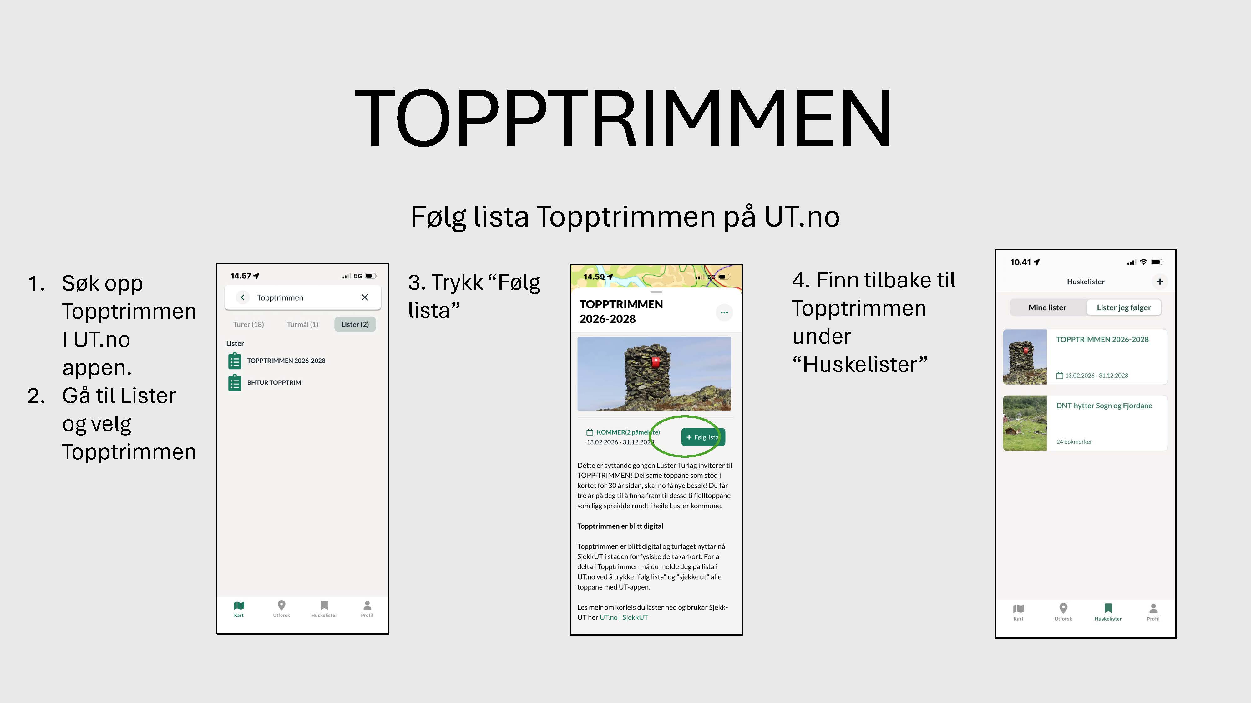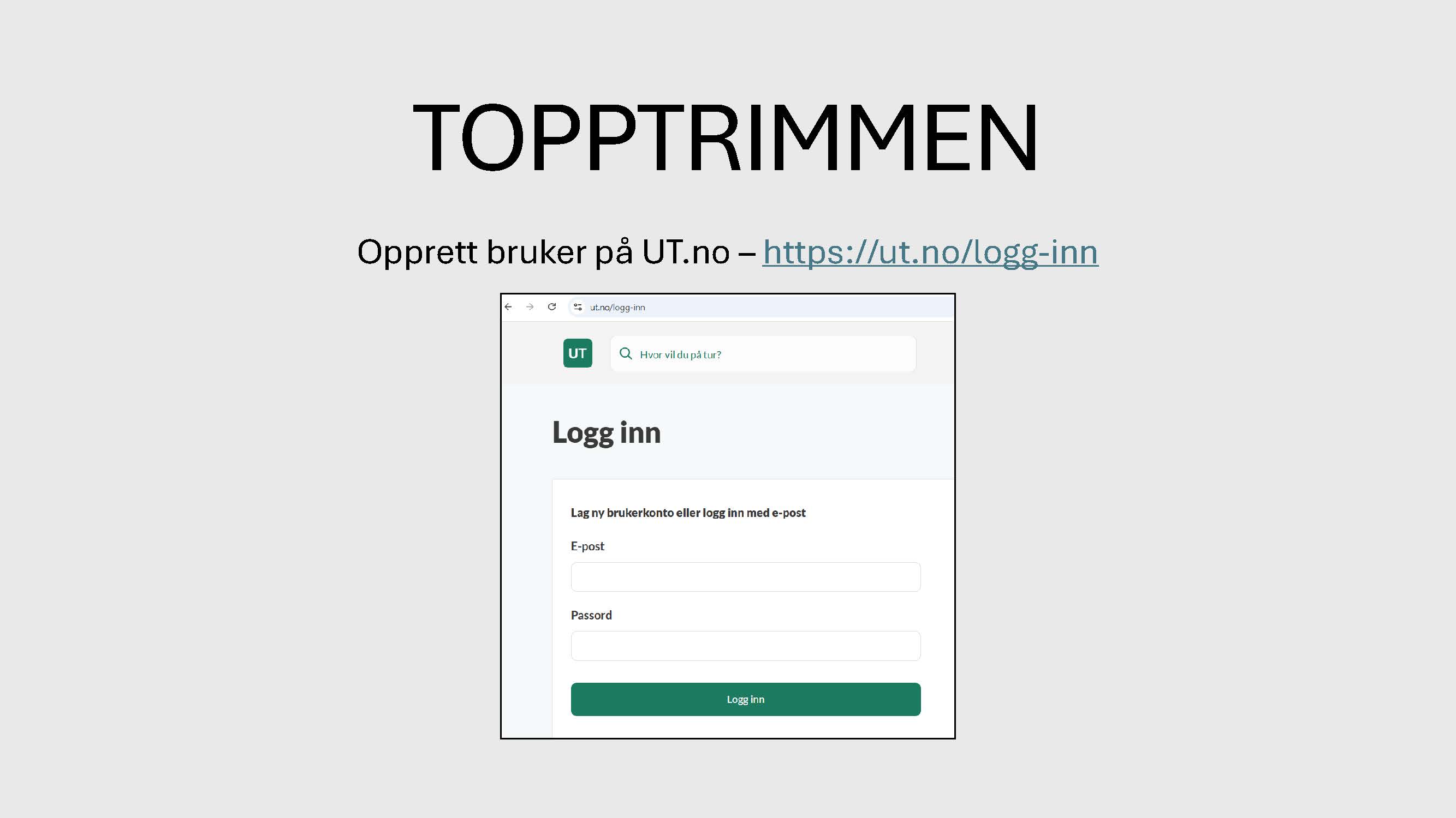 I denne artiklen kan du få vegleiing til korleis du opprettar ein brukar på UT.no og kan komme i gang med Topptrimmen 2026-28