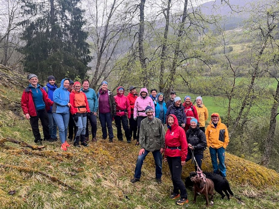 Det var bra oppmøte på årets fyrste onsdagstur frå Refsdal gamle kraftstasjon til Rislåg. Det var 22 personar som ville ta turen. Vi startar med ei kort omvising på Refsdal gamle kraftstasjon. Takk til Knut Hovland for interessante opplysingar og historier, t. d. om «galehesten». Etterpå gjekk vi opp trappa langs røyrgata og inn på stien og etter kvart traktorvegen til Rislåg. Takk til Nils Gunnar som viste veg og ryddar sti. Då vi kom fram var geitemjølkinga i full gang. Vi avslutta turen med at alle skreiv seg inn i onsdagsturboka og to fine låtar på munnspel. Takk for musikken, Torstein!