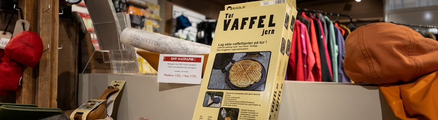Vi har et bredt utvalg av DNTs egne produkter, som lakenposer, capser, T-skjorta og mer. Enkle, funksjonelle og laget for friluftsliv.