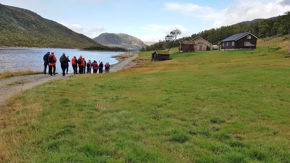 På grunn av lav vannstand i Møsvann kunne ikke Fjellvåken gå helt frem til vanlig sted. Da ble det en 3 km spasertur til Mogen før vi kunne starte på den egentlige turen.