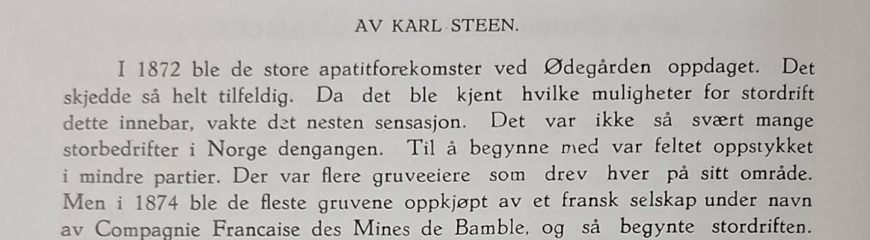 Da gruvene ble drevet på Ødegårdens verk av Karl Steen