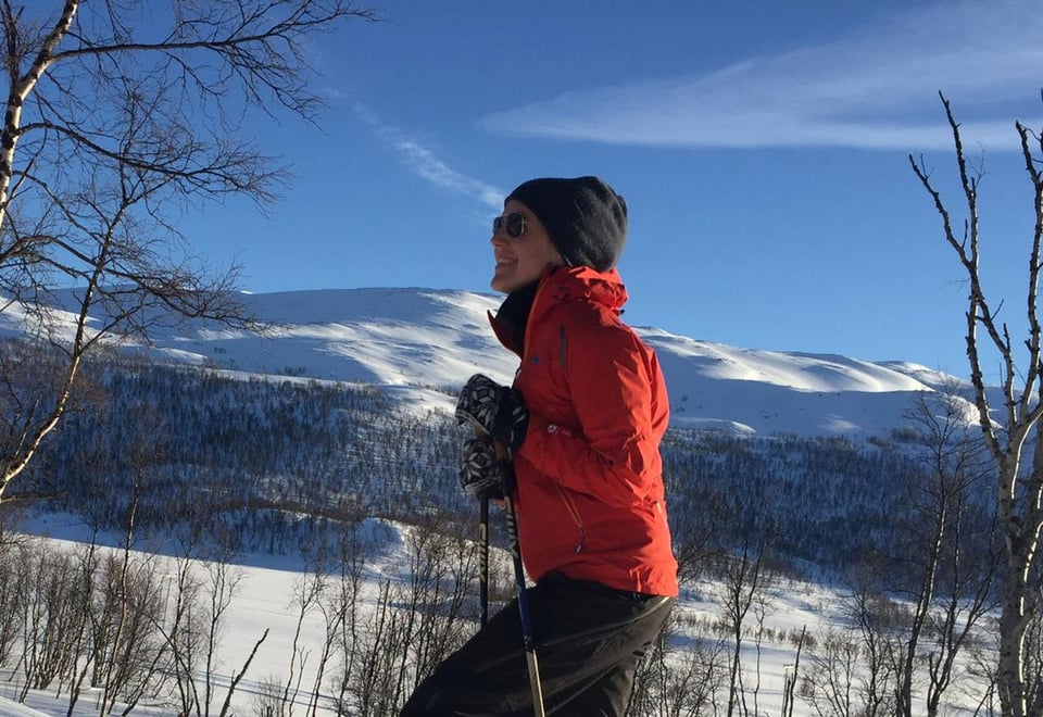 Transport inn til hytta er en eventyrlig tur med snøskuter over Møssvann.