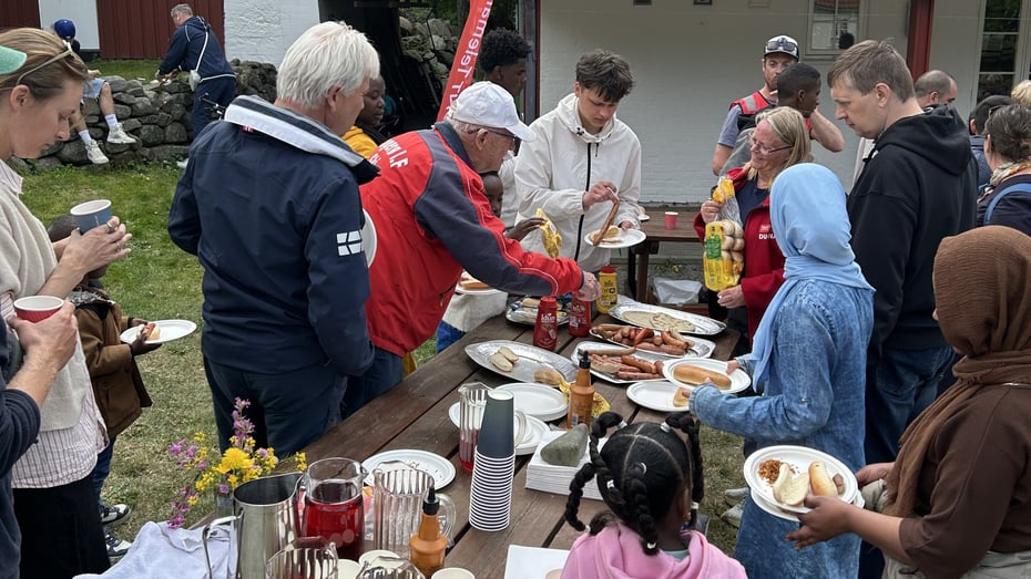 Her ble det servert deilige pølser med tilbehør, levert av Brødr. Brubakken og hvor styret i Turlaget sto for grillingen. I det fine været grupperte folk seg på plenen mellom bygningene på Øitangen. Mange tok også turen til utsiktstårnet til Fugleforeningen. Deilig varmt sommervær som virkelig var prikken over i’en.