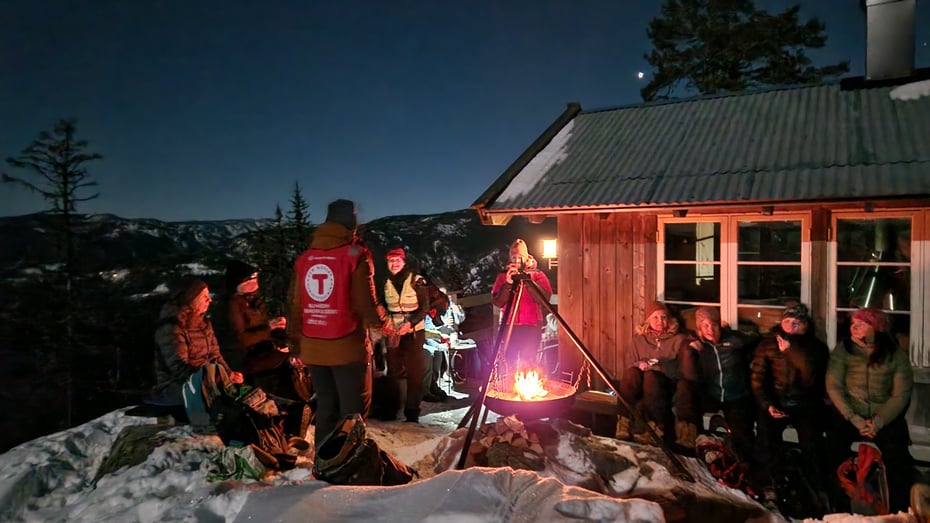 Vi fyrte i bålpanna ved Grublebu, og fleire benytta anledning til å steike seg noko godt. Litt orientering om kva vi såg rundt oss før vi måtte vende nasen ned att.