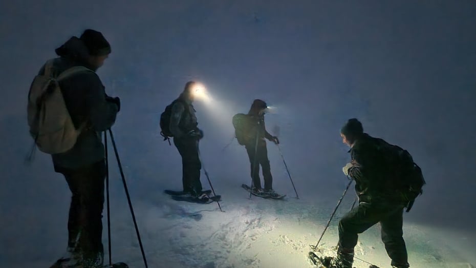 Det blei ein frisk tur med ein frisk gjeng i lett snøvær og skodde til Skarstøylnetten i kveld. Månen glimra med sitt fravær, men god og triveleg stemning allikevel.